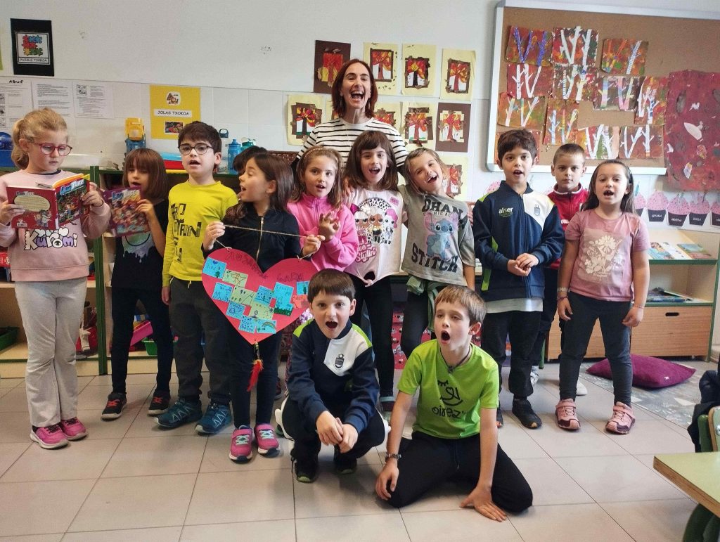 Además, el escritor nos contó un montón de cosas interesantes sobre sus viajes alrededor del mundo, detalles de otros libros que ha escrito, anécdotas divertidas sobre su vida,… En definitiva, nos acercó un poco más al mundo creativo de la escritura. El alumnado planteó preguntas surgidas en el aula y fue un encuentro especial e interesante. Finalmente regresamos a clase con la firma de Patxi en nuestros libros y súper contentas y contentos.