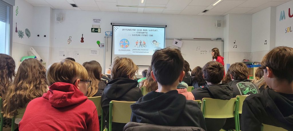 Herenegun, Nafarroako Kirolaren Institutuak abian jarri duen “Nafarroako emakume kirolarien hitzaldiak ikastetxeetan” programari esker, seigarren mailako ikasleek Estibaliz Sagardoy Zunzarren txirrindulariaren bisita jaso zuten. Estibalizek gauza asko kontatu zizkigun bere kirol bizitzaz, bere esperientziaz… Eta bestetik, kirola egiteak berarentzat duen garrantzia ere adierazi zigun.